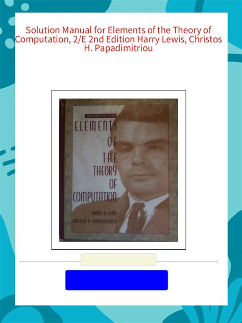 Read ELEMENTS OF THE THEORY OF COMPUTATION SOLUTION MANUAL Epub